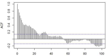3、序列依赖性-时间序列(尤其是金融序列)最重要的特征之一就是序列相关性。当时间上相互靠近的时间序列观测值倾向于相互关联时,就会发生这种情况。