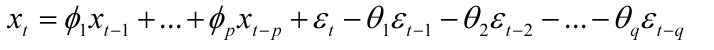 自回归滑动平均模型(Autoregressive moving average model,简称:ARMA模型)。是研究时间序列的重要方法,由自回归模型(简称AR模型)与移动平均模型(简称MA模型)为基础“混合”构成。它比AR模型法与MA模型法估计更精确,但其参数估算比较繁琐。ARMA(p,q)模型简记形式如下: